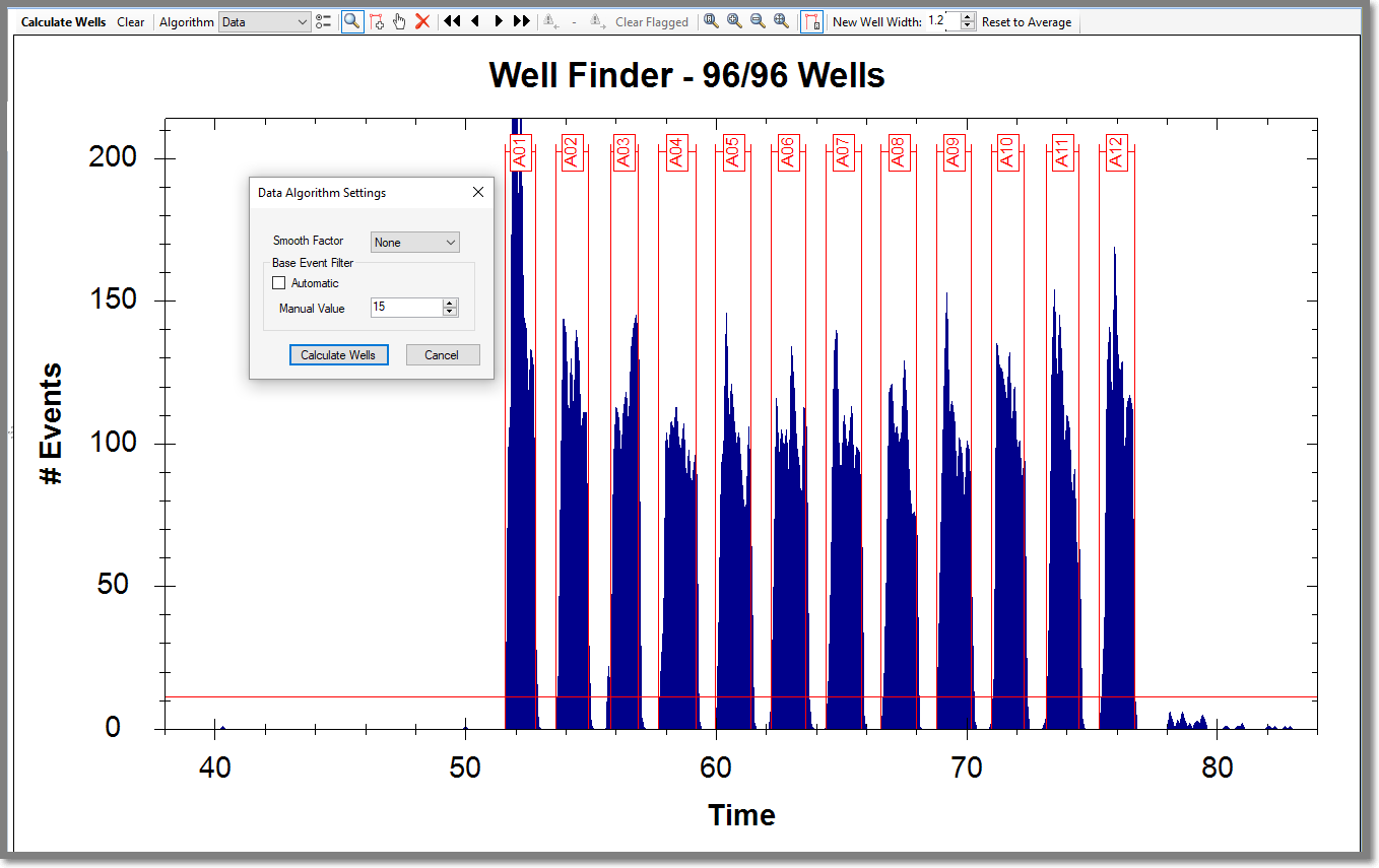 The Algorithm Selector The Algorithm Selector allows you to switch the well identification algorithm from the default of Adaptive to Timing or Data. When the new algorithm is selected the Well Identification will automatically be performed with the selected algorithm.