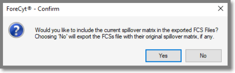If there is a Spillover Matrix associated with the experiment, iQue Forecyt® will ask if you want to include it.