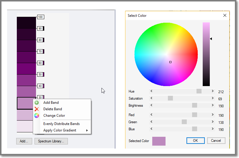 To change a band color, click Change Color. The color wheel opens and the process is the same as Add Color.