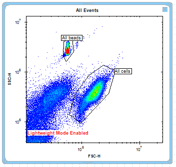 Once lightweight mode is enabled and you have selected a percentage of the data to view, open your experiment by selecting open under the file tab. Be aware any charts displayed under the analysis tab display in red text “lightweight mode enabled” to clearly indicate when a percentage of the FCS file is being utilized.