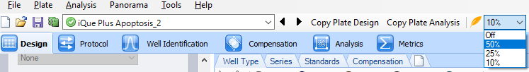 When you open iQue Forecyt®, you will notice a drop-down list on your dashboard. Lightweight Mode is an optional analysis tool that shows a select percentage (10%, 25% or 50%) of the FCS data collected. This tool can be useful to explore initial analysis parameters for large data sets, in order to quickly interpret how to best modify gates and other features before completing analysis . Note that once lightweight mode is enabled, you will not have access to metrics functions and will not be able to perform data export.